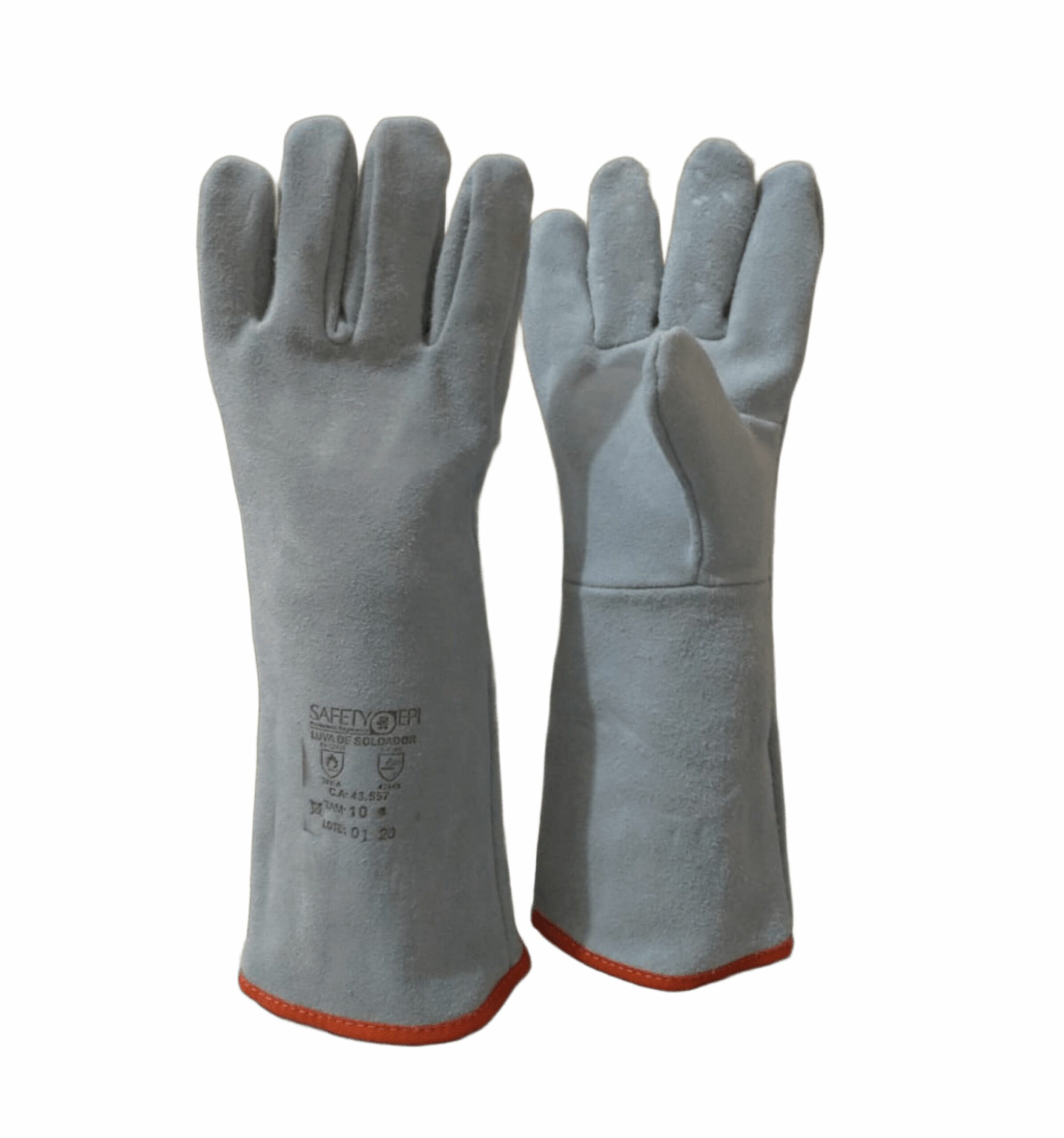 LUVA DE SEGURANÇA CONFECCIONADA EM RASPA COM FORRAÇÃO INTERNA, COSTURA EM ARAMIDA.