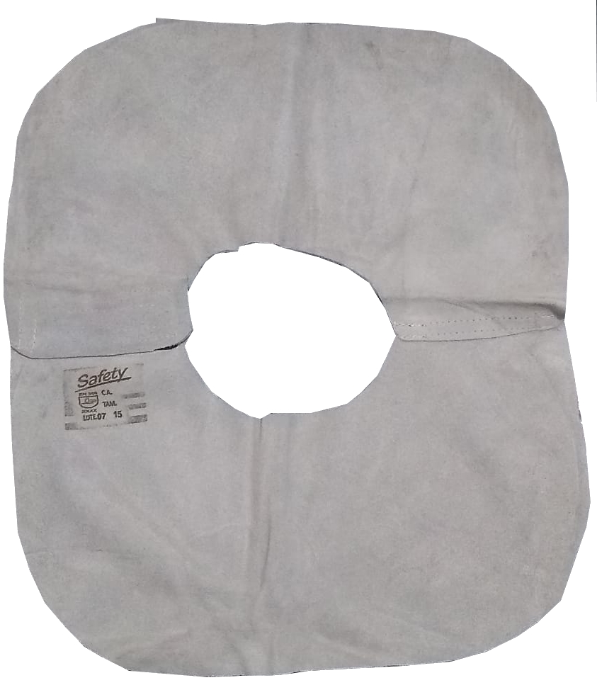 Gola de proteção confeccionada em raspa grupon, com fechamento frontal em velcr